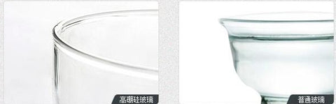 1 Color contrast: The color of high borosilicate glass is yellow or white, the lighter the color, the lighter the quality and the harder the texture. Ordinary glass is blue-green in color.