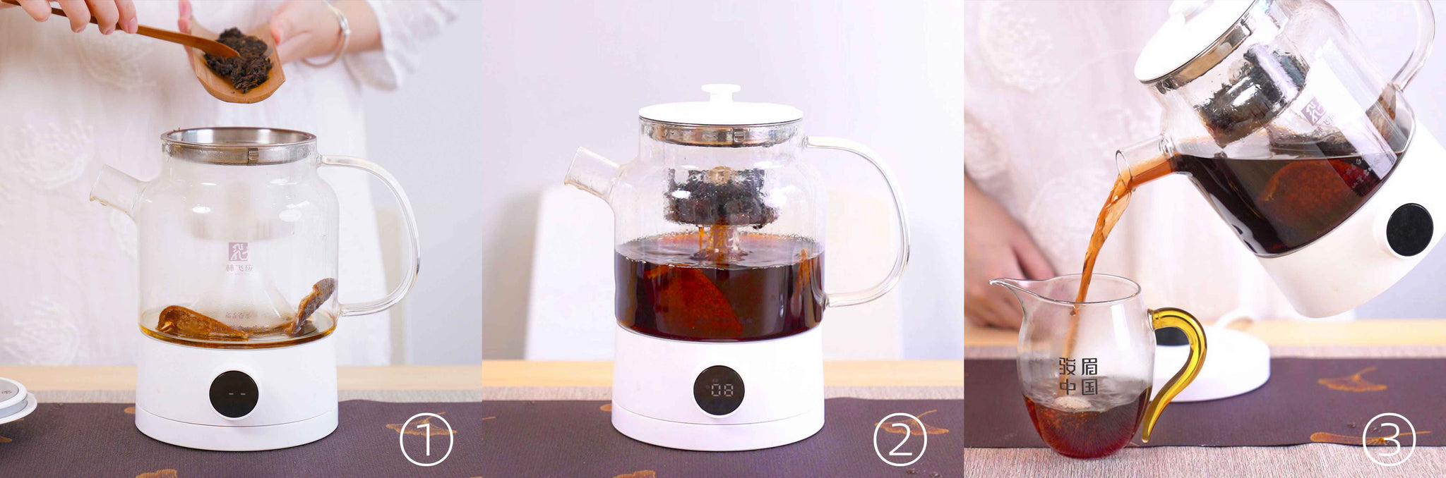 Step 1:Prepare mineral water about 95°C. Pu'er tea brewed at high temperature for better aroma.